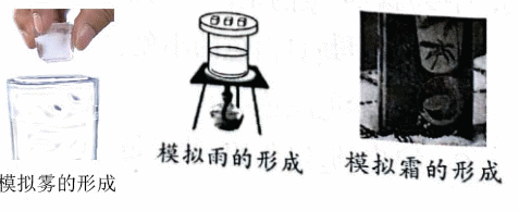二十四节气是中国古代用来指导农事的补充历法,其中雨水、谷雨、白露、寒露、霜降、小雪和大雪等与天气现象有关。善于观察、爱动脑筋的小兵是生活中的有心人,他对“雾、雨、霜是怎么形成”的问题展开了以下的模拟探究: