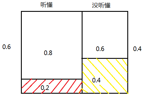 经过测试没听懂的人中0.6的人考试及格,0.4的人不及格——这是实际情况。