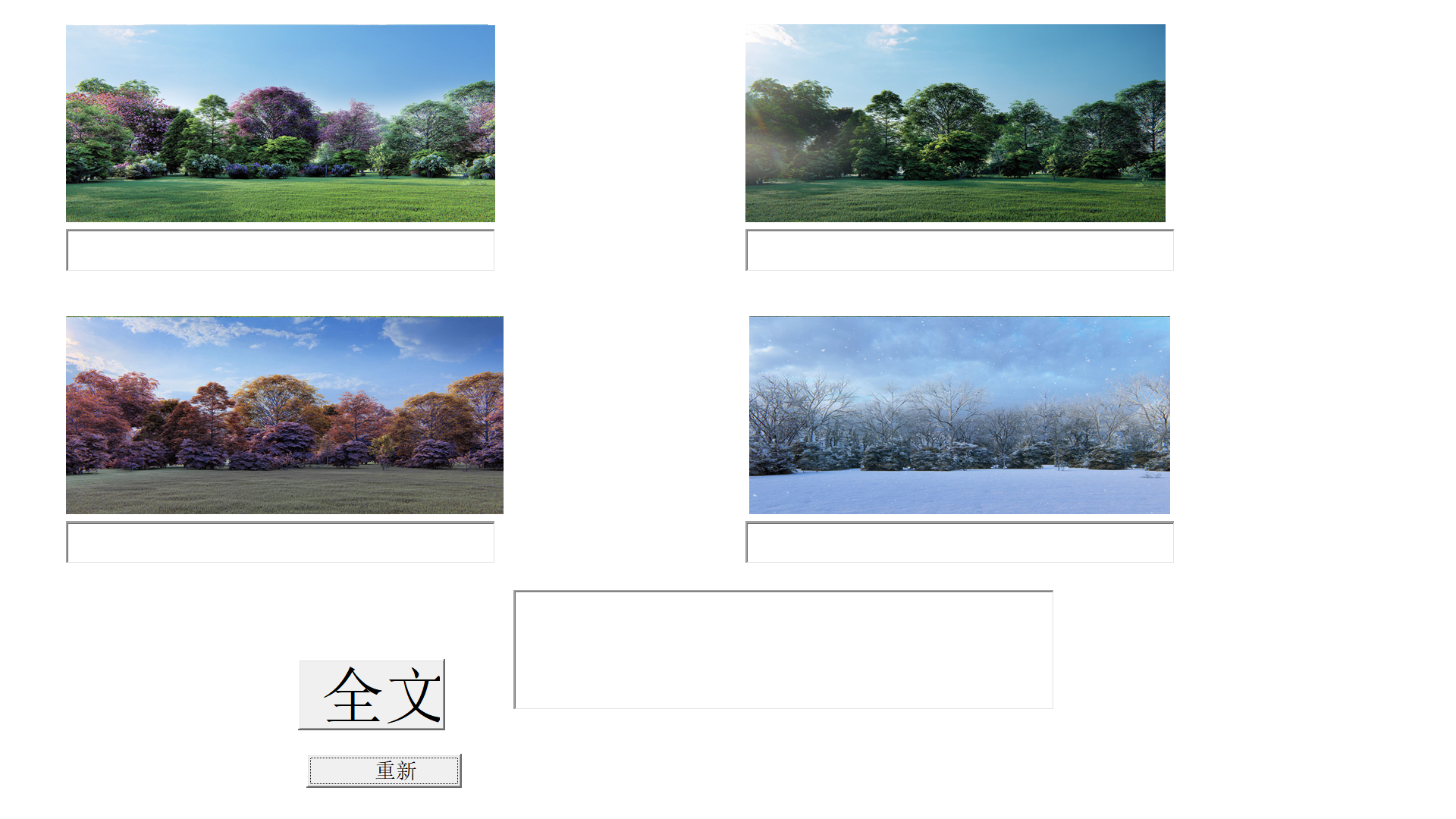 上课的时候,一张一张播放,学生看图或视频后,学生就说话(通过语音输入法),学生现场说的可以直接出现在屏幕上(文本框里),这样,四张图片都说完后,就可以点击全文按钮,直接合成一篇文章。