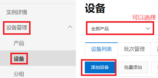 添加设备的时候不选择产品,等到添加设备的时候再选择产品(当然也可以这个时候就选择产品——就是第三中添加设备的方法)。