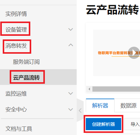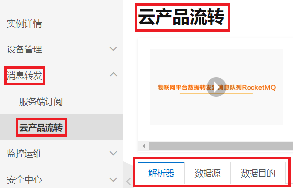 找到左边菜单栏——“消息转发”——“云产品流转”——功能项。