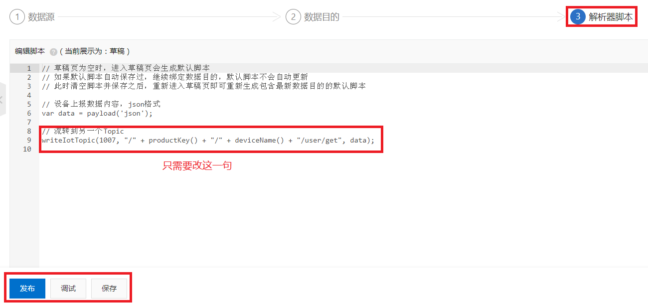 在网上找了好多资料,发现没有哪一个写的比较详细,不断的查阅,也找不到关于脚本编写的资料,经过不断的摸索,才找到方法,现在把他记录下来,希望还在找有关阿里云数据转发的,可以帮上一点忙。