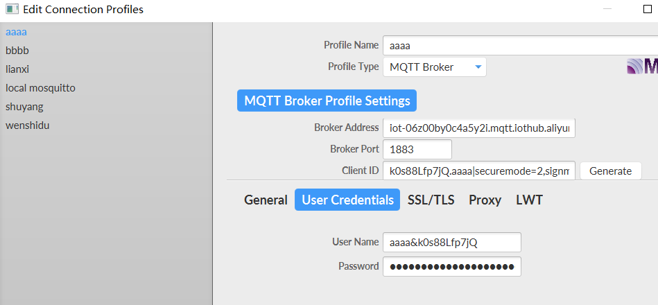 可以先用一用——“调试”——这里的调试需要先连接设备,这里用MQTT.fx来模拟。